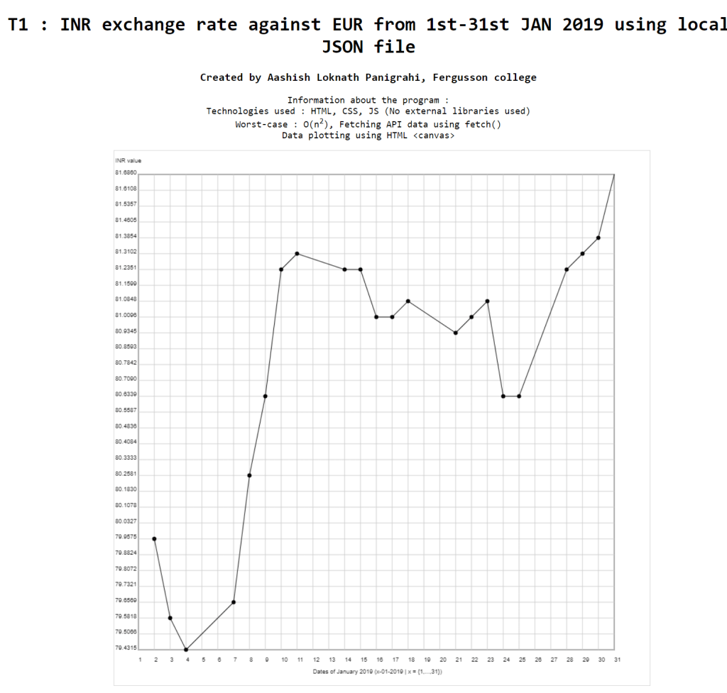 NOTE: Applicable to [T1], [T2], and [T3]: Historic data can be found using the data.json file.- [T-1] Plot the graph of the INR exchange rate against EUR from 1 Jan 2019 to 31 Jan 2019.